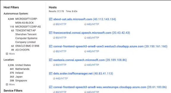 Платформа, которая помогает ИБ специалистам обнаруживать, отслеживать и анализировать устройства, подключенные к сети. Censys проверяет каждый общедоступный IP-адрес и популярные доменные имена и дополняет свою базу данных подключенных устройств.