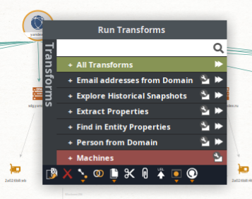 Обычно, когда выбран Maltego Public Servers, для выбора машины доступны следующие опции: