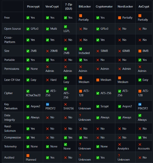 Утилита, которая умеет не только шифровать, но и генерить надежные пароли, а также редактировать метаданные файлов. Picocrypt поставляется только с графическим интерфейсом.