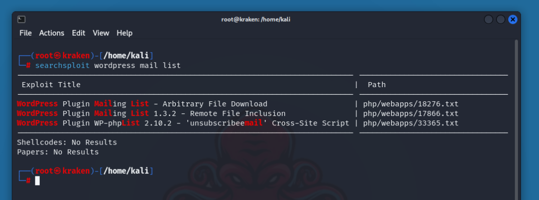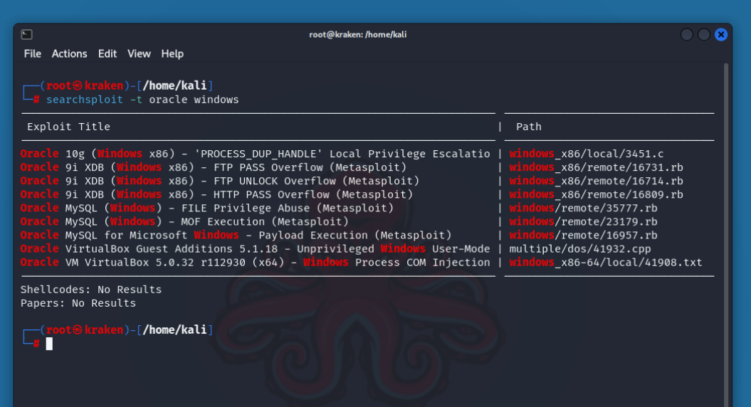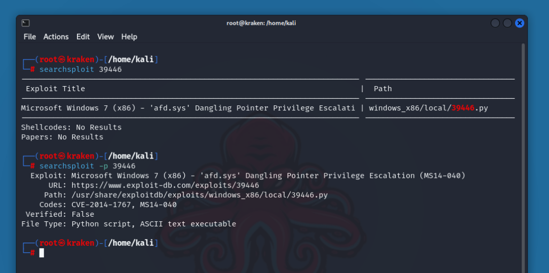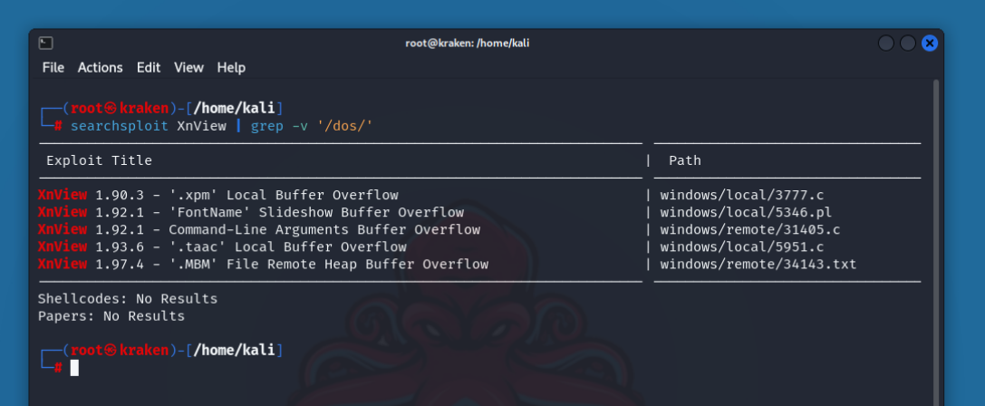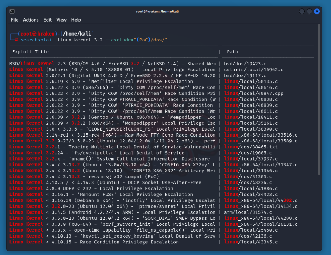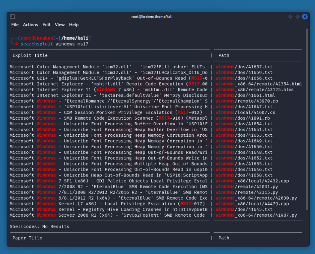 Обратите внимание, что в SearchSploit используются операторы AND, а не OR. Чем больше терминов используется, тем больше результатов будет отобрано.