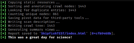 7. После сканирования → SkipFish создаст отчет.