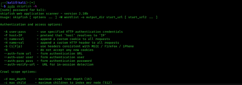 sudo skipfish -h