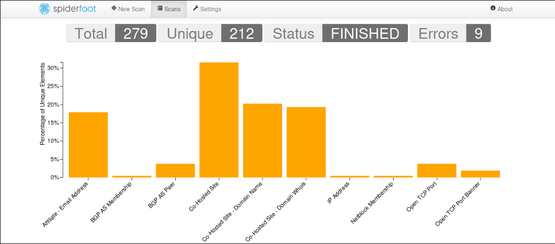 SpiderFoot вытаскивает информацию из Whois, получает информацию о веб-страницах, записях DNS и многое другое.