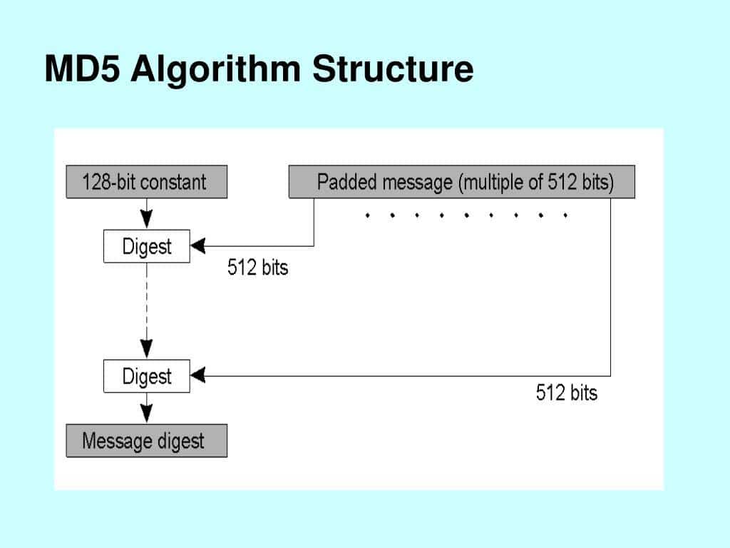Один из самых популярных алгоритмов хеширования. Его не рекомендуют сегодня для использования, потому что в нём есть несколько известных уязвимостей. Ключевая особенность — преобразует входные данные произвольной длины в хеш-значение с фиксированной длиной 128 бит.