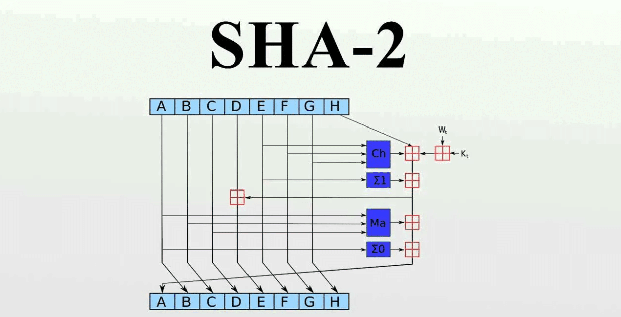 Набор алгоритмов хеширования данных. В него входят хеш-функции с разными размерами выходных значений: SHA-224, SHA-256, SHA-384 и SHA-512. Цифры — это количество бит. Больше размера выходного хеша → выше высокой стойкость к атакам. Но есть и минус: нужно будет больше мощностей.