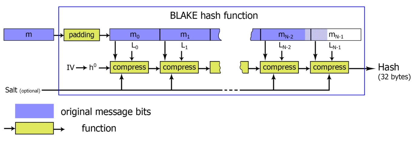 Семья алгоритмов хеширования данных. BLAKE разработали специально обеспечения безопасности и эффективности в криптографических целях. Его чаще всего используют, когда нужно защитить данные, проверить целостность данных и электронных подписей.