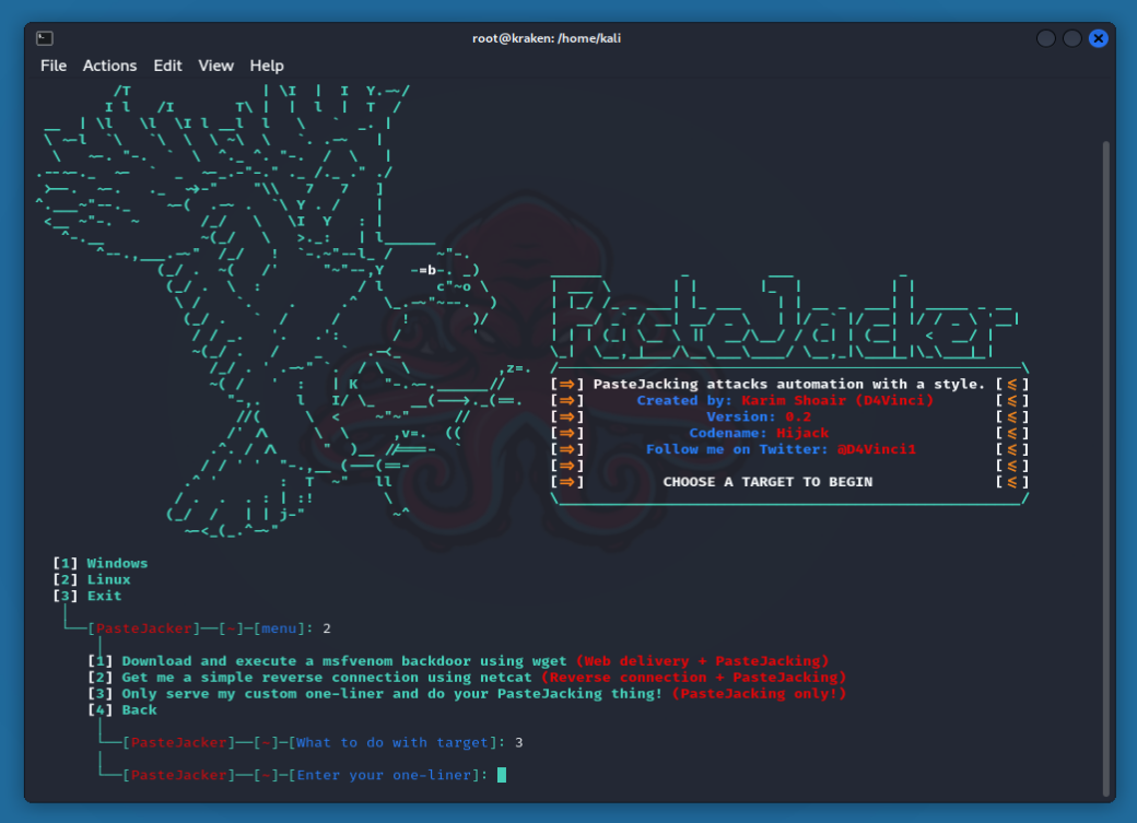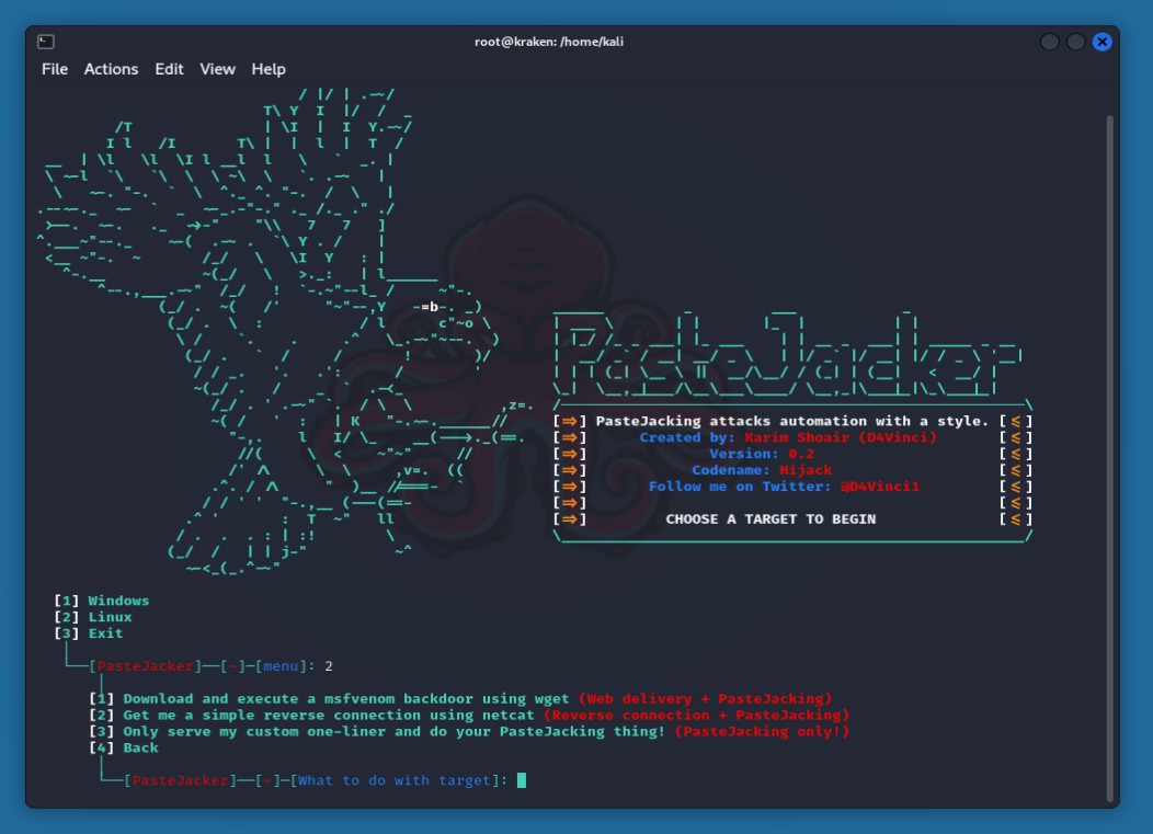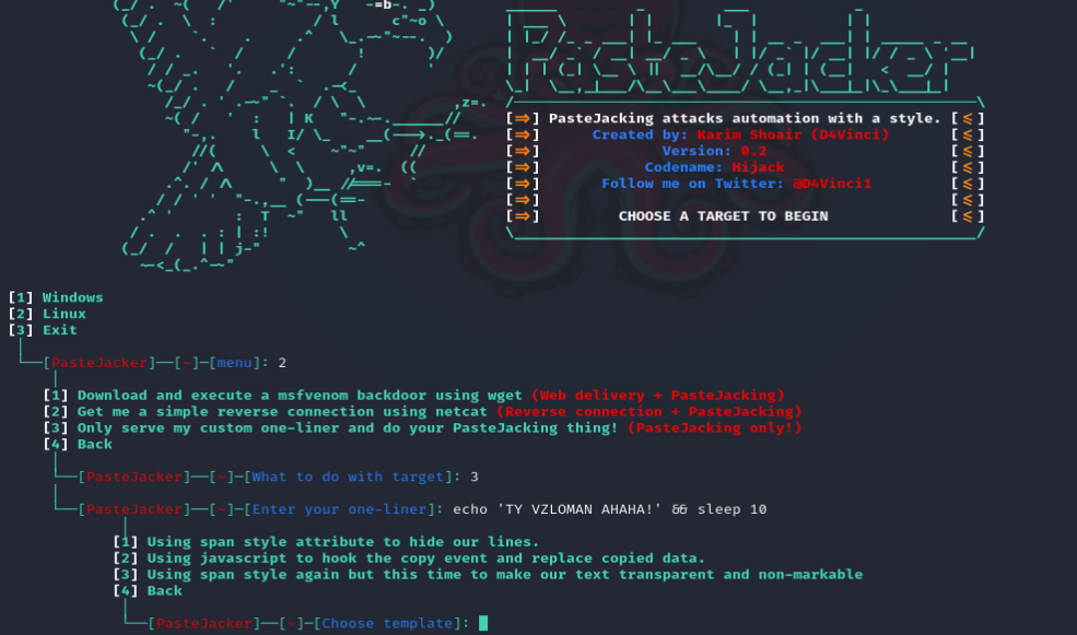 Для этого нам нужен автоматизированный скрипта типа PasteJacker на Kali Linux.